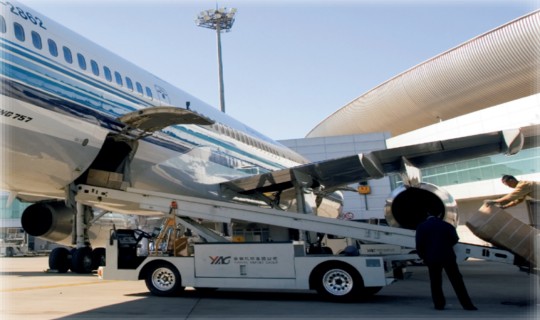 該類設(shè)備主要用于飛機(jī)裝卸行李、包裹及郵件等散件的飛機(jī)地面服務(wù)設(shè)備。該設(shè)備由底盤總成、發(fā)動(dòng)機(jī)總成、皮帶架總成、液壓系統(tǒng)和電氣系統(tǒng)組成。